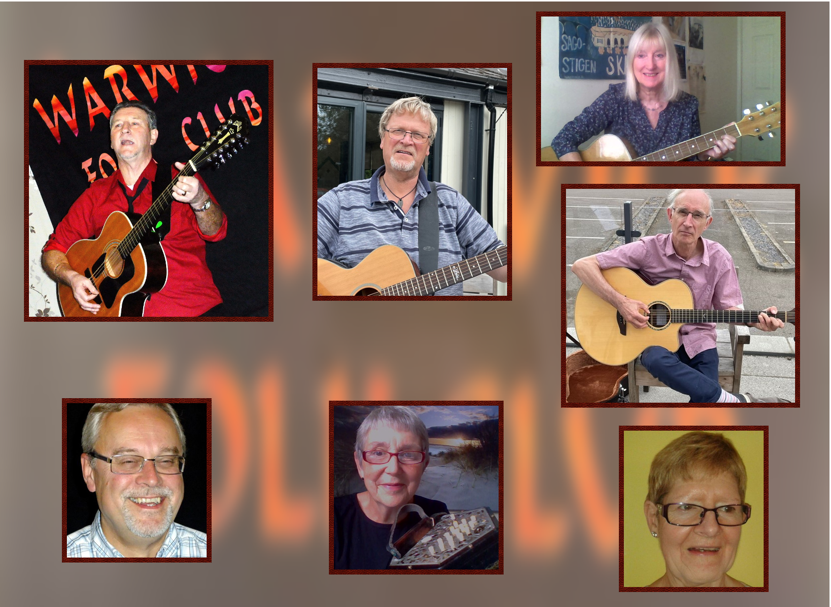 (pictures top left to bottom right) Dave - MC, Don – Guest Booking and MC, Robin – Publicity, website and MC Maggie – MC, liason with Warwick Arms and general help on club nights, Rob – Treasurer and Door, Sally – Website, MC Mandy with help from Jenny and Julie – Raffle